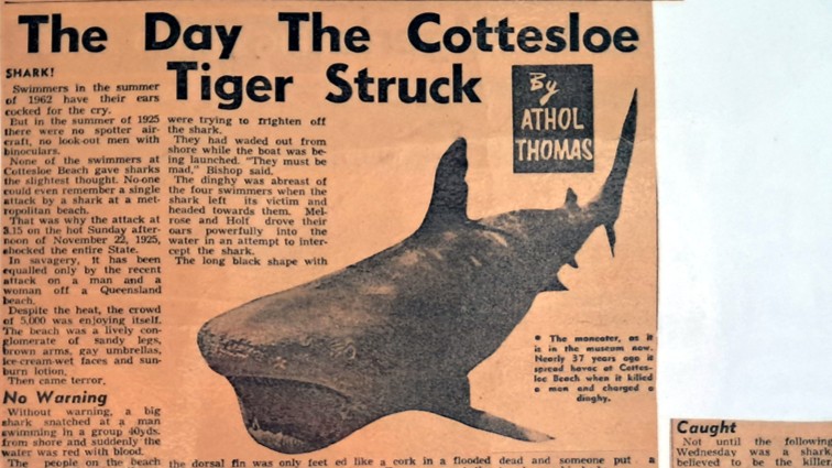 Newspaper journalist Athol Thomas covered the 1925 Shark Attack at Cottesloe in The West Australian on Friday January 5, 1962. See article below.
