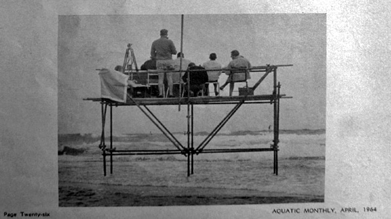 West Australian Surf Riders Assoc (WASRA) contest officials built a scaffold judging stand on the reef for the first State Surfboard Riding Championships held at Yallingup in 1964. The first day went well, but overnight swells destroyed the viewing platform before day two. Ampol Petroleum sponsored the first State Surfboard Riding Championships at Yallingup.