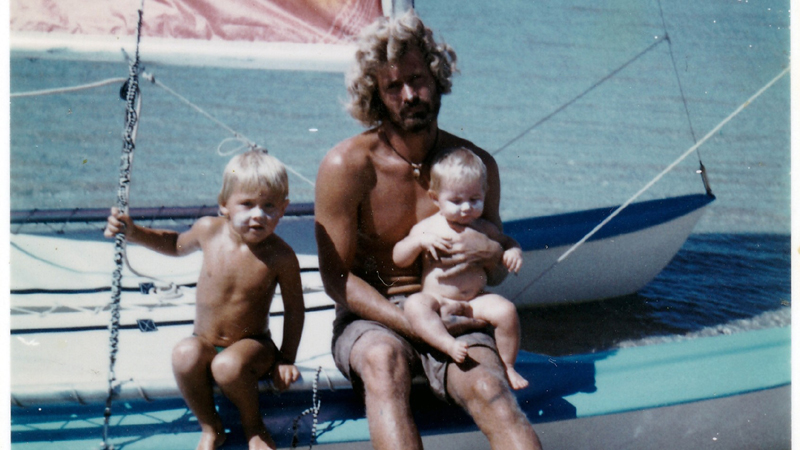 1976 Dunsborough Surf Cat Hire. Ralph with son Patrick & daughter Melanie. Redman family pic.